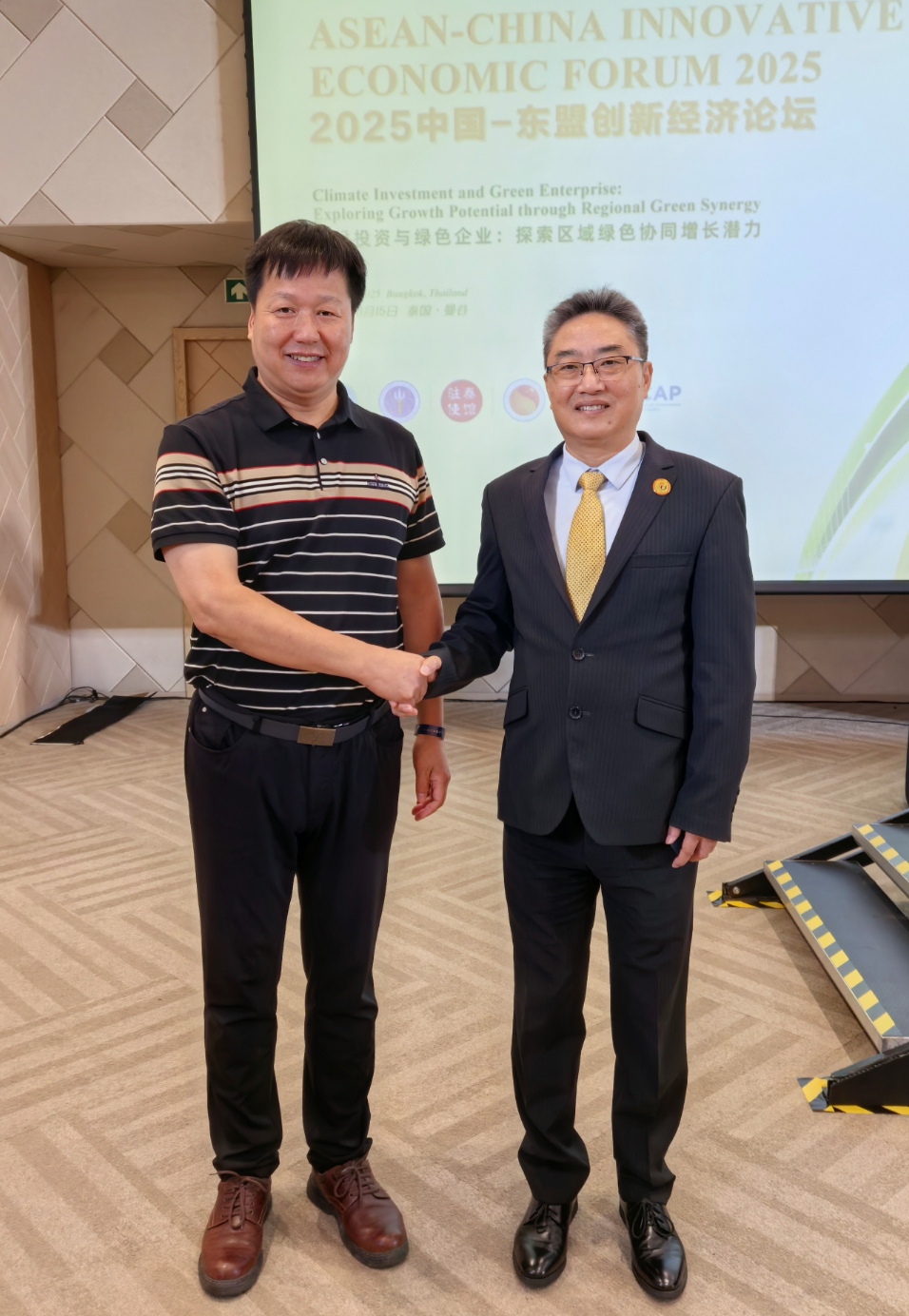 此次论坛汇聚了来自中国及包括泰国在内的东盟国家政府官员、驻泰使节、商协会和企业家代表等近200人,包括中国-东盟中心秘书长史忠俊先生、泰国高教科研创新部次长 Supachai Pathumnakul先生、泰国外交部副次长 Paisan Rupanichkij先生、联合国亚太经社会执行秘书Armida Salsiah Alisiahbana女士、中国驻泰国大使馆参赞赵梦涛先生等重量级领导。国能氢油董事长林进猛先生也应邀出席该大会,围绕绿色转型的最新实践与未来机遇与各企业家展开深入探讨。
